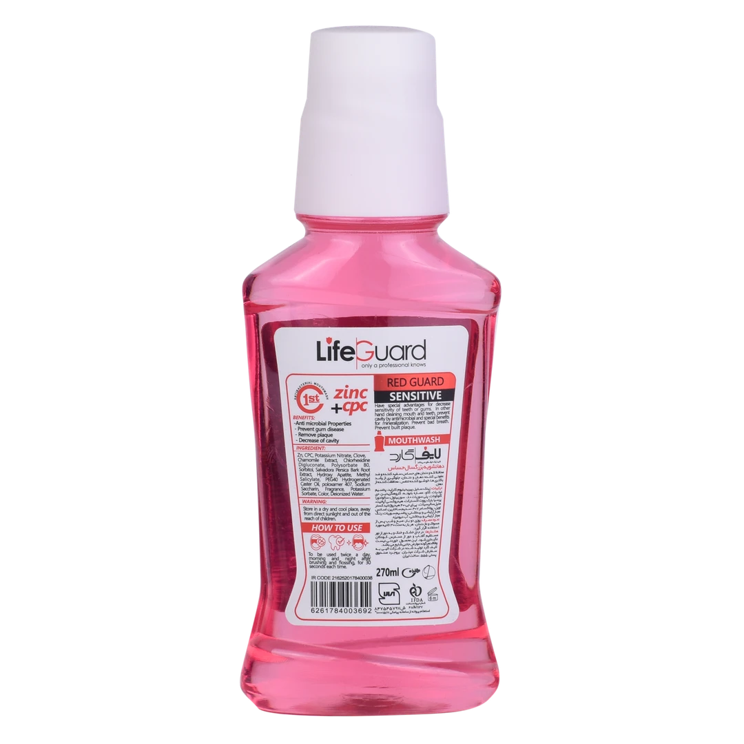 دهانشویه بزرگسال حساس (Red Guard)لایف گاردبا حجم 270 میلی لیتر